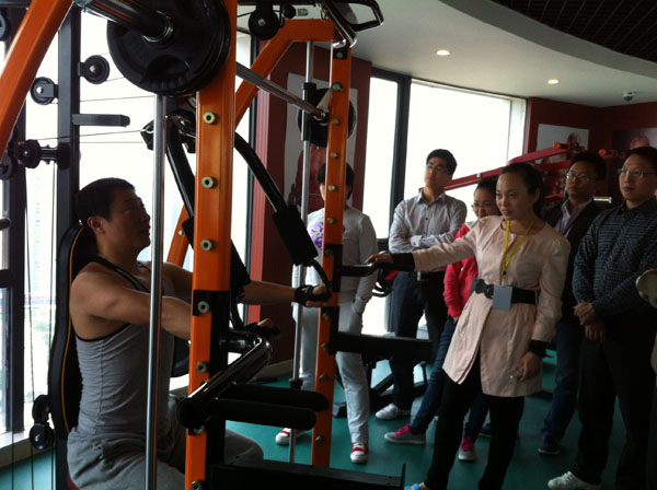 2014年4月26日上午8點(diǎn),培訓(xùn)在健身房?jī)?nèi)正式開始,各個(gè)部門按照事先通知的順序依次進(jìn)入健身房,培訓(xùn)開始前,王總首先強(qiáng)調(diào)了健身的重要性和安全問題,接下來王總詳細(xì)的介紹了每一組健身器材的功能、使用方法及注意事項(xiàng),他親自做示范,并讓員工現(xiàn)場(chǎng)體驗(yàn),通過互動(dòng)的方式,告知大家健身是一個(gè)循序漸進(jìn)的過程,貴在堅(jiān)持。由于部門較多,培訓(xùn)會(huì)持續(xù)了將近三個(gè)小時(shí),王總細(xì)致、耐心的講解和熟練的操作示范贏得了大家的陣陣掌聲。