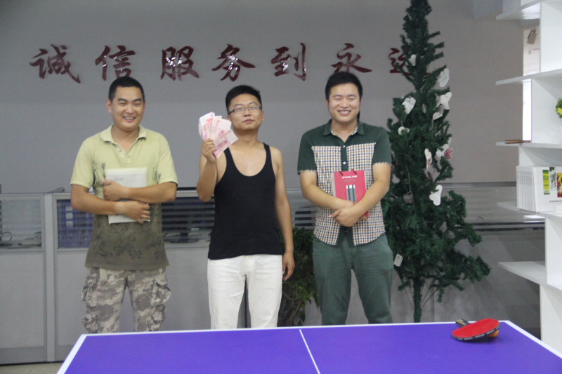 為豐富公司同仁們的業(yè)余生活,促進(jìn)部門同事之間的交流,展現(xiàn)銀豐人積極進(jìn)取、團(tuán)結(jié)向上的精神風(fēng)貌,進(jìn)一步增強(qiáng)企業(yè)凝聚力,2014年7月5日,銀豐公司舉辦了本年度第一屆乒乓球比賽。 下午兩點(diǎn)整,比賽在銀豐公司大廳正式開始,首先進(jìn)行的是女子組的比賽,本著“友誼第一,比賽第二”的原則,女生們在輕松、友好的氣氛中開始了比賽,經(jīng)過緊張激烈的角逐,女子組冠亞季軍產(chǎn)生了,她們分別是公司董事長、副總經(jīng)理以及財(cái)務(wù)部程霖。 隨后是男子組比賽,男單組比賽更是扣人心弦,賽事激烈,經(jīng)過激烈的競爭,最后男子組冠亞季軍也相繼產(chǎn)生,他們分別是業(yè)務(wù)部行業(yè)經(jīng)理張梟、銀豐辦公室司機(jī)杜俊非以及照明事業(yè)部銷售專員牛永恒。公司為參賽選手準(zhǔn)備了豐厚的禮品,董事長親自為男單組冠軍頒發(fā)1000元現(xiàn)金獎(jiǎng),并為亞軍和季軍頒發(fā)了精美的獎(jiǎng)品。 此次乒乓球賽豐不僅豐富了同仁們的業(yè)余生活,更增進(jìn)了員工之間的感情,公司領(lǐng)導(dǎo)充分肯定了這次比賽的價(jià)值并對獲獎(jiǎng)的同仁們表示了真誠的祝賀!
