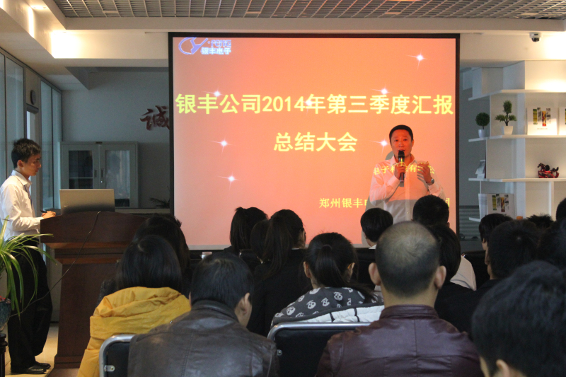 為幫助銀豐同仁們制定合理的工作計劃及目標,激發(fā)同仁們的工作熱情,同時使銀豐同仁明確公司未來發(fā)展方向,2014年11月1日,銀豐公司舉行了隆重的表彰及第三季度總結大會。 上午九點,表彰大會在銀豐公司大廳正式召開,此次參會的領導有公司董事長、總經(jīng)理、副總經(jīng)理以及各部門經(jīng)理、同仁。此次受表彰的是在2014年9月、10月有突出銷售業(yè)績及參與項目各個環(huán)節(jié)的銀豐同仁們。公司副總經(jīng)理周輝女士親自為獲獎人員頒發(fā)獲獎證書及獎品,隨后獲獎同仁們精彩的獲獎感言贏得了陣陣掌聲。頒獎結束后,銀豐公司董事長做了總結性的發(fā)言,鼓勵銀豐的銷售同仁們向更大的目標奮進。 表彰大會結束后,緊接著是銀豐公司2014年第三季度員工匯報及總結大會,員工們對自己上一季度的工作做了概括性的總結,并對下一季度的工作做了詳細的計劃,同仁們匯報完后,銀豐公司總經(jīng)理王偉東先生做了精彩的總結,一方面對此次匯報中所出現(xiàn)的問題進行分析并提出合理建議;另一方面為員工以后的工作指明了方向,會議最后,銀豐公司董事長做了重要的講話,首先闡述了公司日常規(guī)定的重要性及長遠性,隨后用銀豐公司中層領導真實的奮斗經(jīng)歷誠懇風趣的表達了堅持不懈的努力是成功必要條件,公司頓時處于一種激情澎湃,斗志昂揚的正能量之中。 我們堅信,在公司領導的正確指引及銀豐同仁們的不懈努力下,銀豐公司未來的發(fā)展定會按照我們規(guī)劃的目標穩(wěn)步實現(xiàn)。