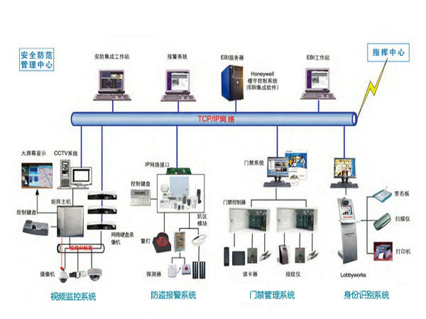 對入侵報警、視頻安防監(jiān)控、出入口控制等子系統(tǒng)進行組合或集成,實現(xiàn)對各子系統(tǒng)的有效聯(lián)動、管理和監(jiān)控的電子系統(tǒng)。