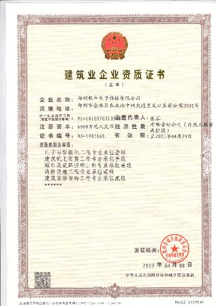 公司是涉密信息系統(tǒng)集成乙級(jí)資質(zhì)企業(yè)、建筑智能化系統(tǒng)設(shè)計(jì)專(zhuān)項(xiàng)乙級(jí)資質(zhì)企業(yè)、電子與智能化工程專(zhuān)業(yè)承包一級(jí)資質(zhì)企業(yè)、機(jī)電設(shè)備安裝工程專(zhuān)業(yè)承包一級(jí)資質(zhì)企業(yè)、城市與道路照明工程專(zhuān)業(yè)承包一級(jí)資質(zhì)企業(yè)、專(zhuān)業(yè)燈光工程綜合技術(shù)能力一級(jí)資質(zhì)企業(yè)、專(zhuān)業(yè)音響工程綜合技術(shù)能力一級(jí)資質(zhì)企業(yè)、舞臺(tái)機(jī)械工程綜合技術(shù)能力資質(zhì)企業(yè)、音視頻系統(tǒng)集成工程綜合技術(shù)能力一級(jí)資質(zhì)企業(yè)、安全技術(shù)防范服務(wù)一級(jí)資質(zhì)企業(yè);并取得了安全生產(chǎn)許可證,通過(guò)了ISO9001:2008質(zhì)量管理、環(huán)境管理、職業(yè)健康安全管理、信息技術(shù)服務(wù)管理、信息安全管理五大體系認(rèn)證,榮獲了“AAA”級(jí)誠(chéng)信企業(yè)信用等級(jí)證書(shū)。公司是高新技術(shù)企業(yè)、河南科技型中小企業(yè)、河南省軟件企業(yè)、專(zhuān)精特新企業(yè)。